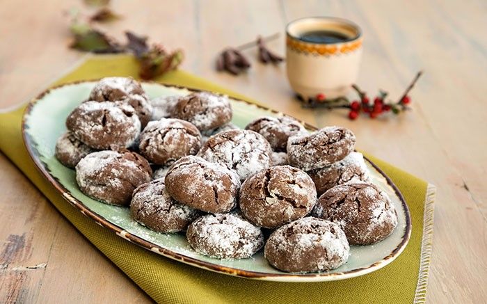 Reteta acestor fursecuri crapate de ciocolata – crinckles– este o reteta simpla si delicioasa din bucataria americana. Coaja crocanta, crapata, miezul moale si fraged, praful de zahar pudra de pe ele fac ca aceste fursecuri cu ciocolata sa fie considerate cele mai grozave delicii, de neratat de Craciun, dar si in orice alte momente in care aveti pofta de bucatele mici de ciocolata transformate in bilute ninse cu zahar. Americanii le pregatesc special pentru Craciun.