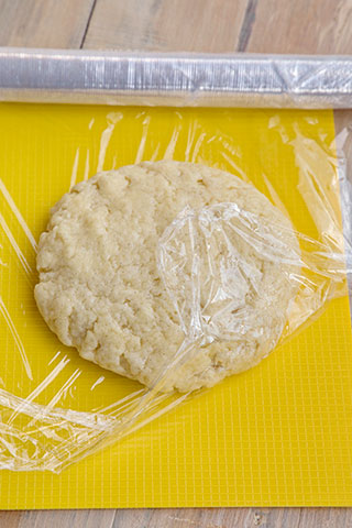Am incorporat faina amestecata cu un varf cutit de sare. In momentul in care aluatul s-a omogenizat l-am invelit in folie alimentara si l-am pus in frigider pentru 45-60 minute.