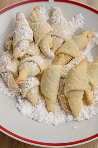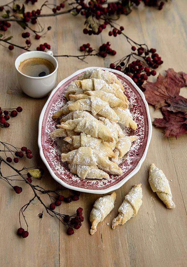 Cornulete fragede cu untura si smantana sunt nelipsite de sarbatori. Nu exista sa nu am pe masa doua trei feluri de deserturi de acest gen. Am mai multe retete de cornulete, asa ca daca vreti sa va lasati inspirati va invit sa vedeti toate retete de cornulete aici: cornulete cu nuca, cu vanilie, cornulete cu bors, cu gem, cu rahat.
